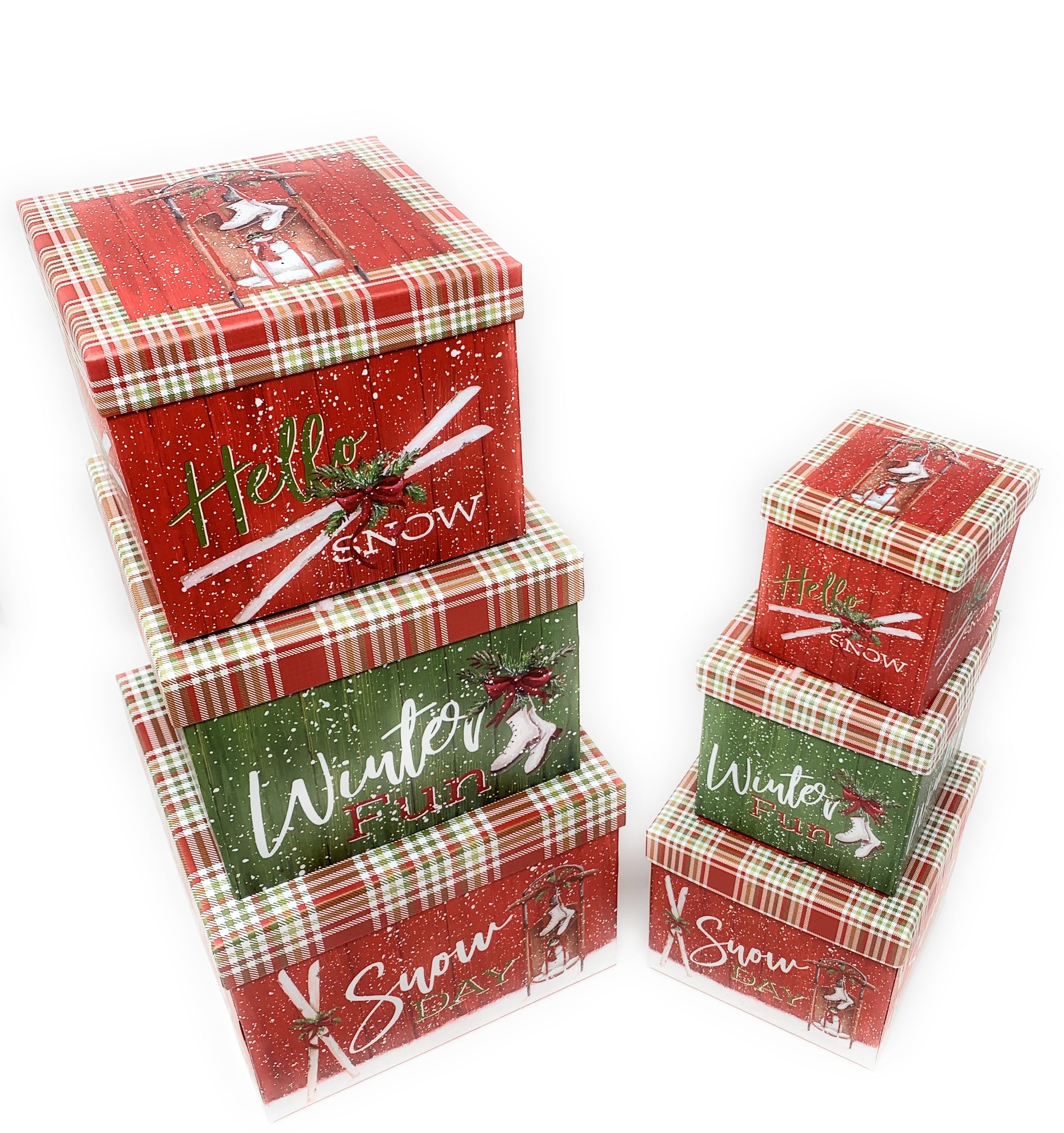 6 Small Deluxe Heavyweight Nested Christmas Gift Boxes (Ice Skates)